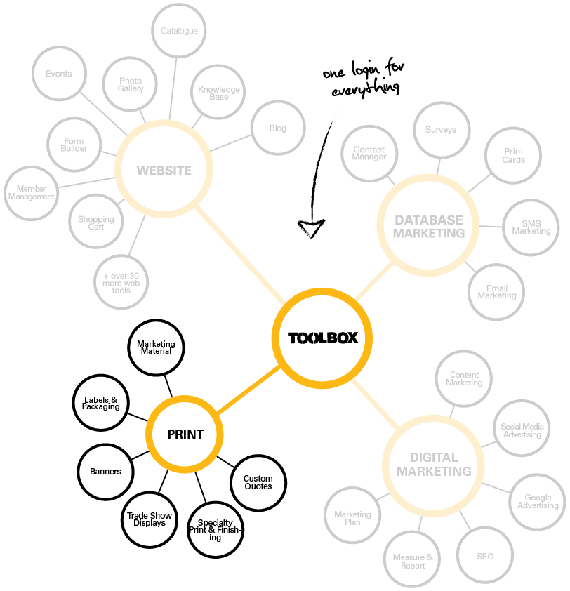 This system includes a content management system, database marketing tools, and customer relationship management features — all accessible through a single login. Having these tools connected allows businesses to manage their website, marketing campaigns, and leads from one central system.